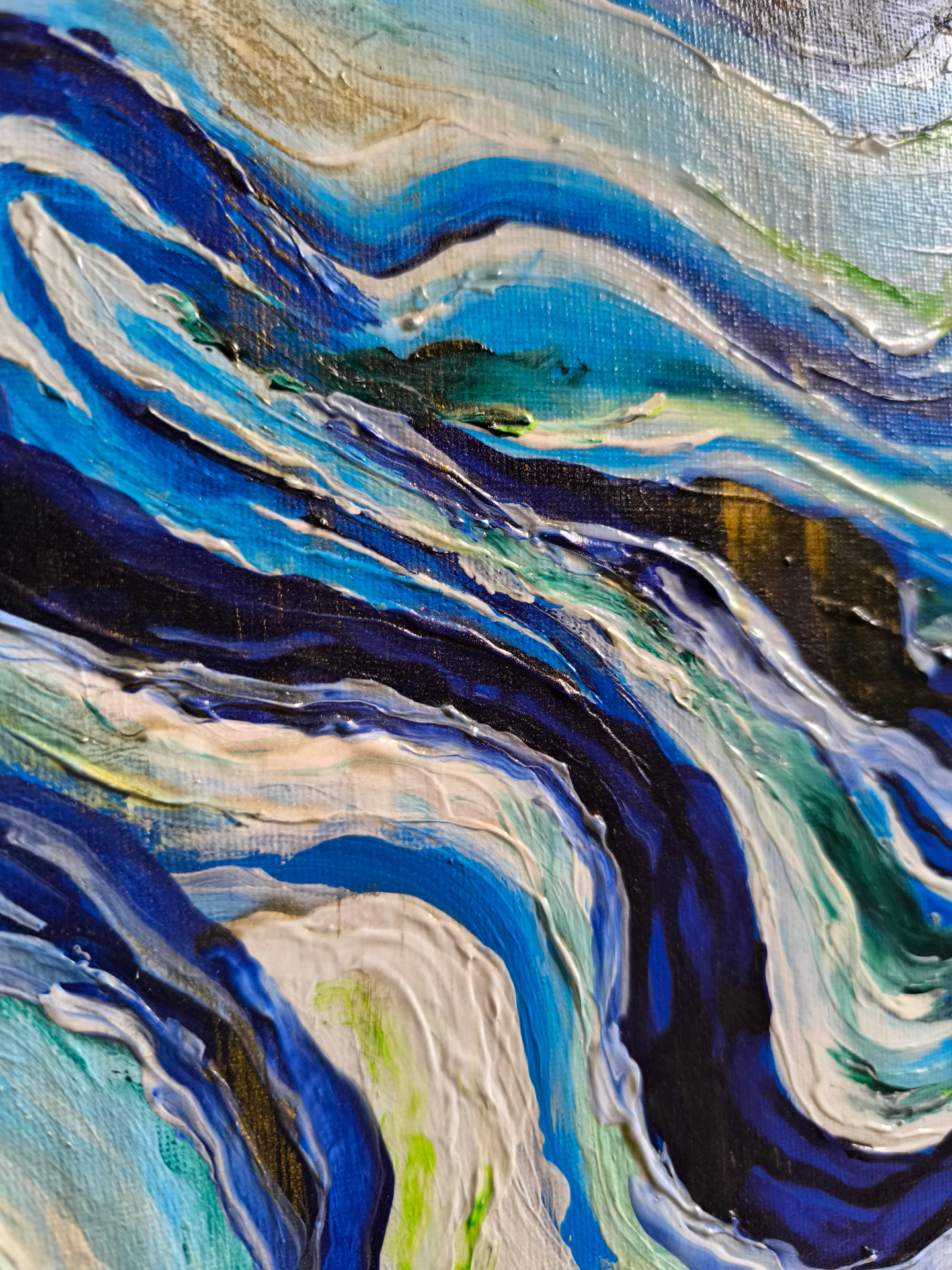 Němá tvář. Abstraktní obraz malovaný akrylovými barvami na plátně nataženém na dřevěném rámu. Rozměry obrazu jsou 80x60cm. Lakováno.